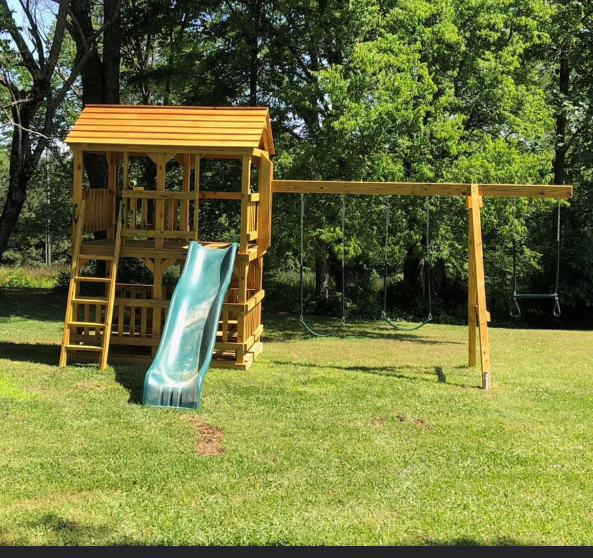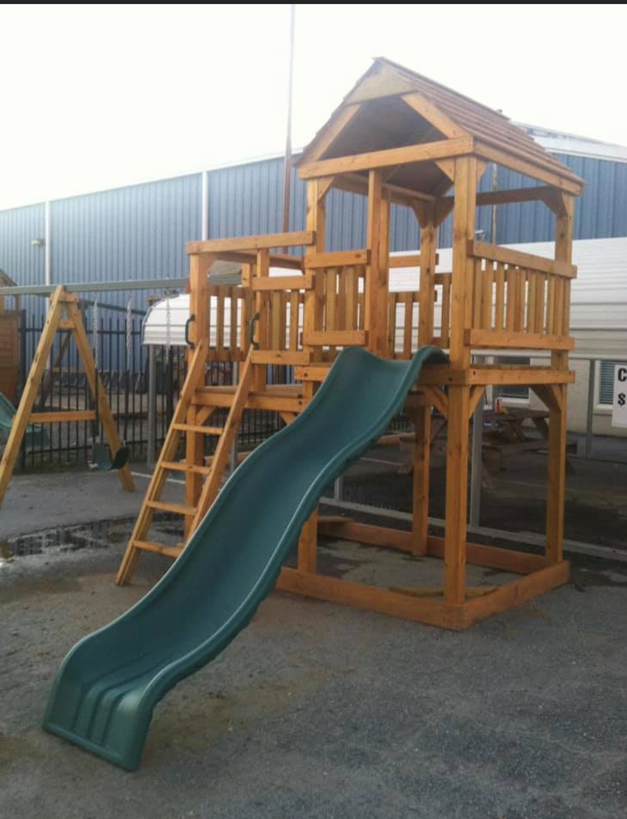 Make your back yard the envy of the neighborhood with Backyard Building Play Sets. We have different models to choose from. See the samples below and come talk to our staff to pick out just the right one for your kids or grandkids. The smiles our playsets bring are priceless. Free set up and delivery within 30 mile radius.